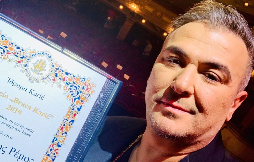 Η Δευτέρα όμως θα πρέπει πραγματικά έχει μείνει αξέχαστη στον τραγουδιστή, καθώς το ίδρυμα γραμμάτων και τεχνών Karić, βράβευσε τον Έλληνα καλλιτέχνη για τη συμβολή του στη συνεργασία των δύο λαών μέσα από τη μουσική.
